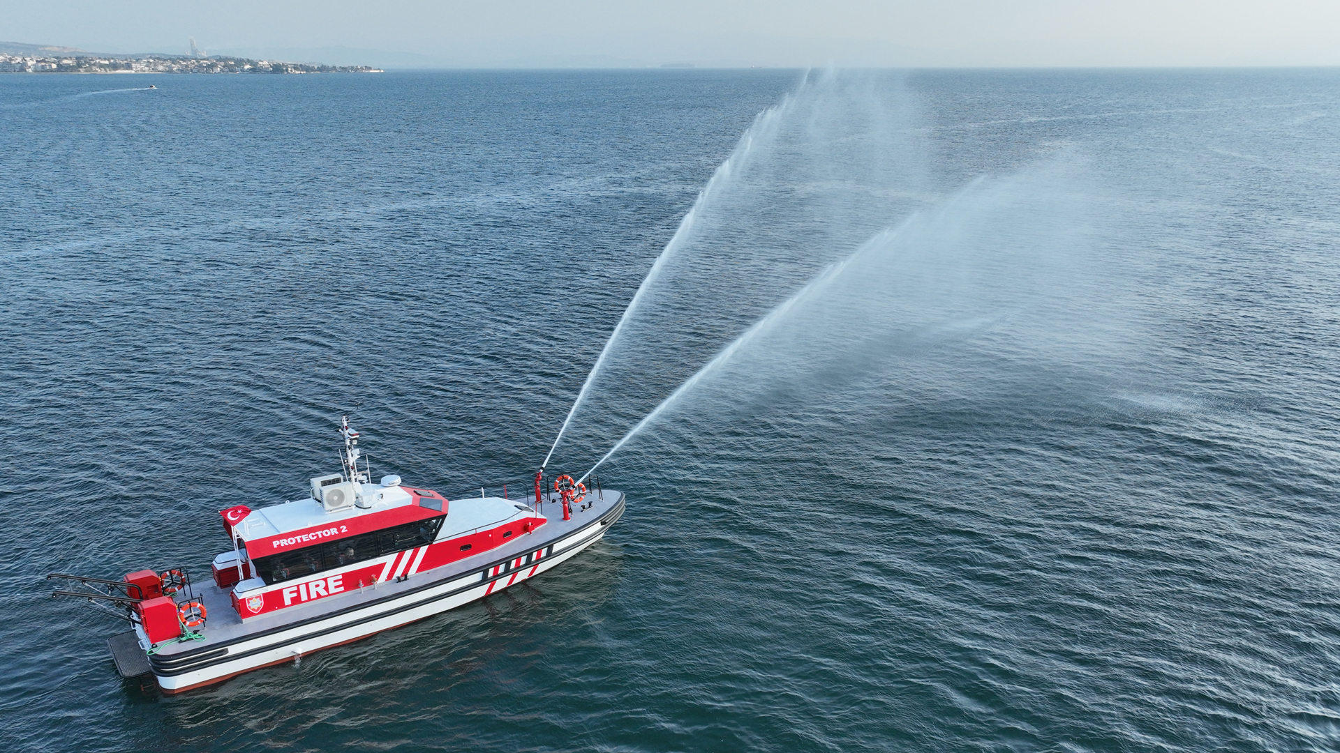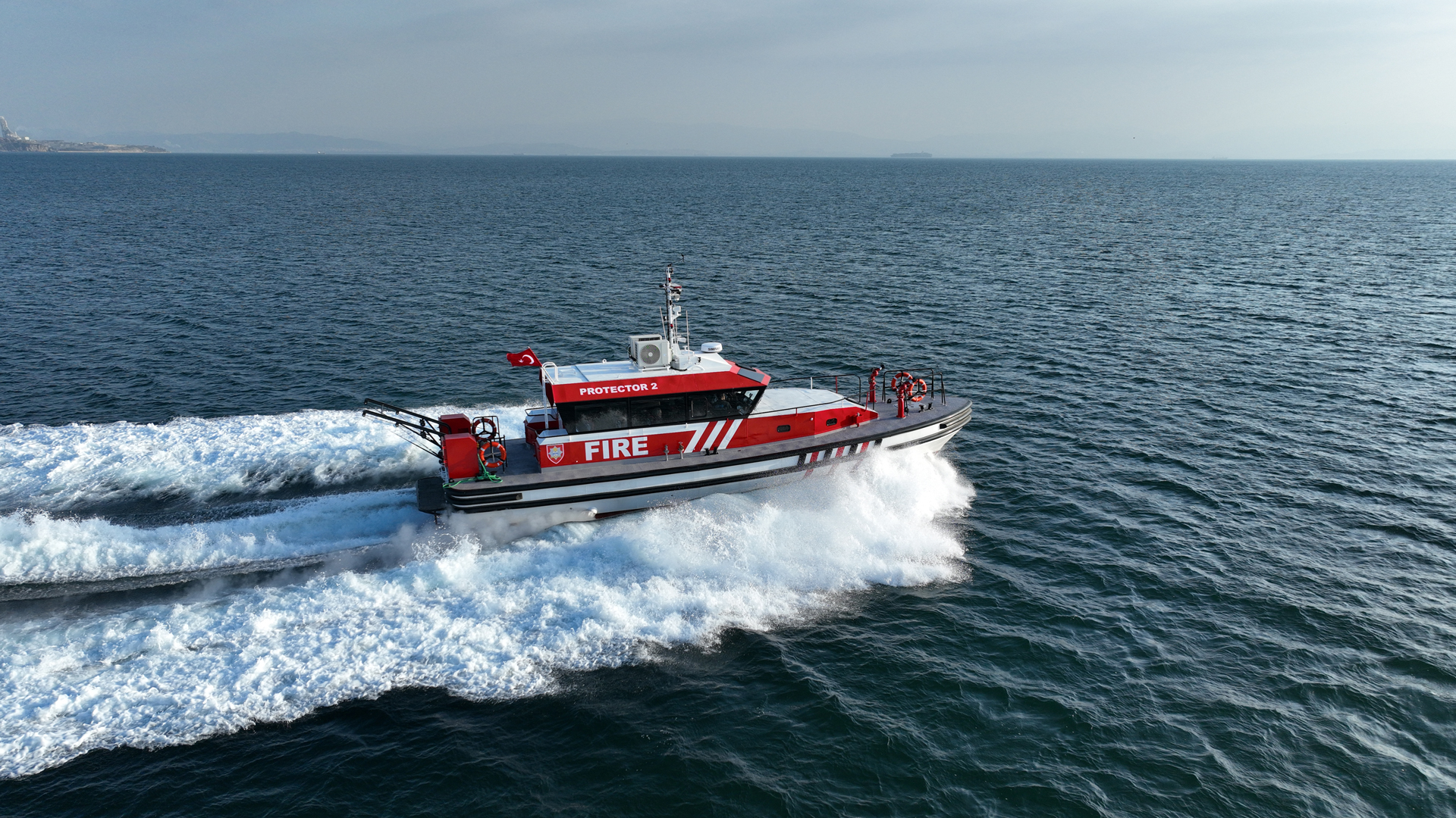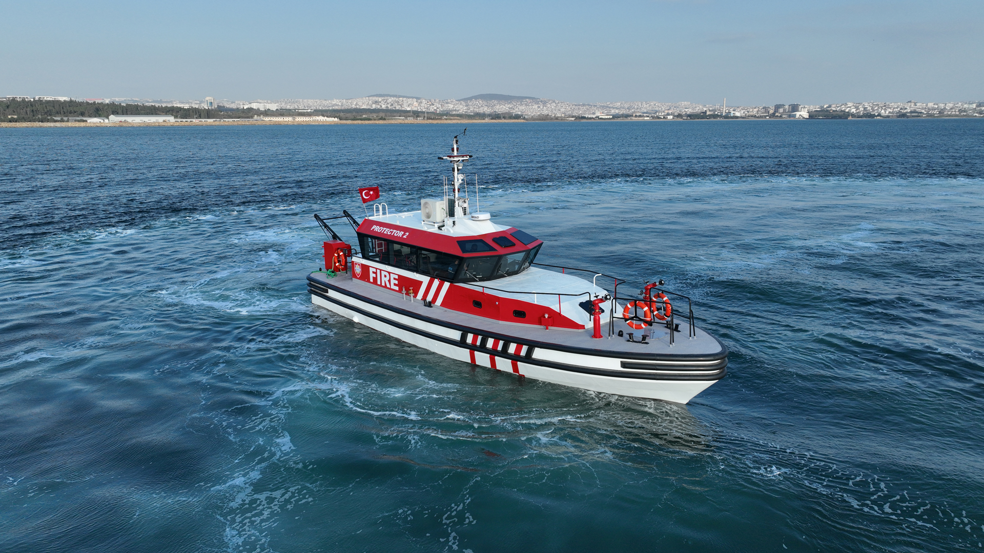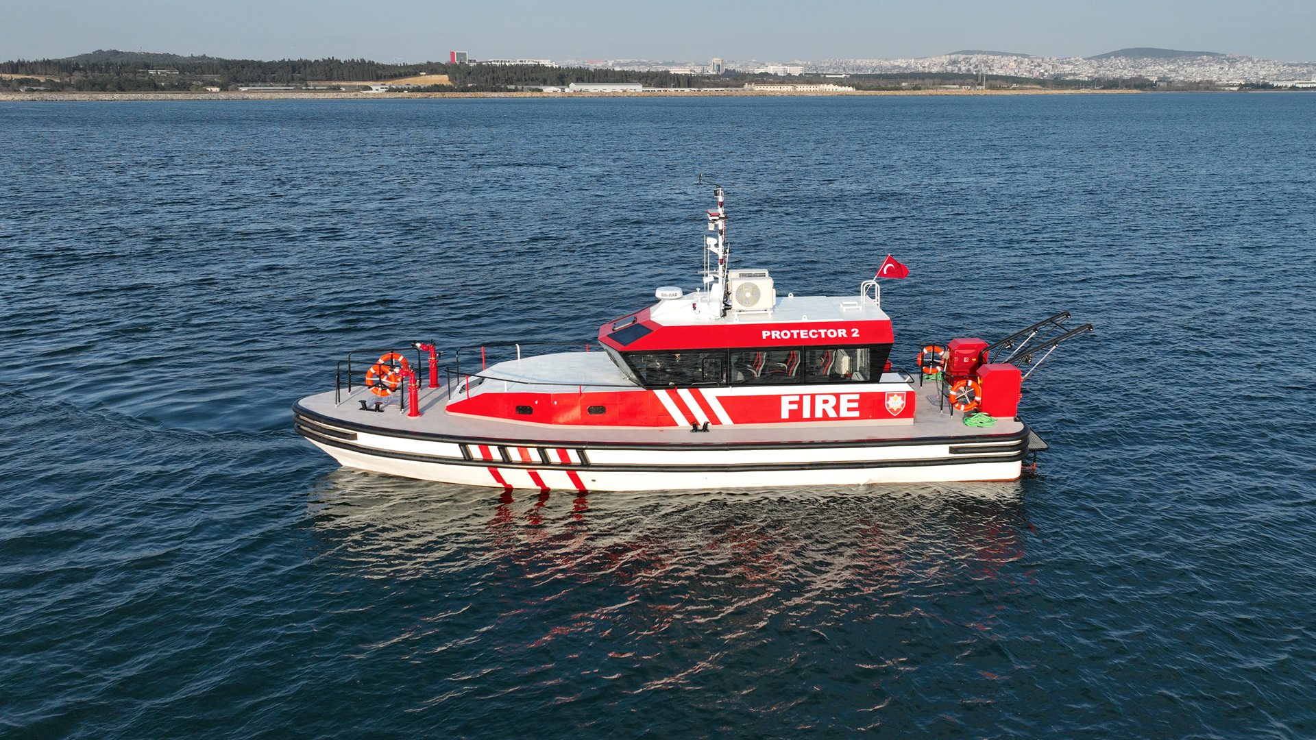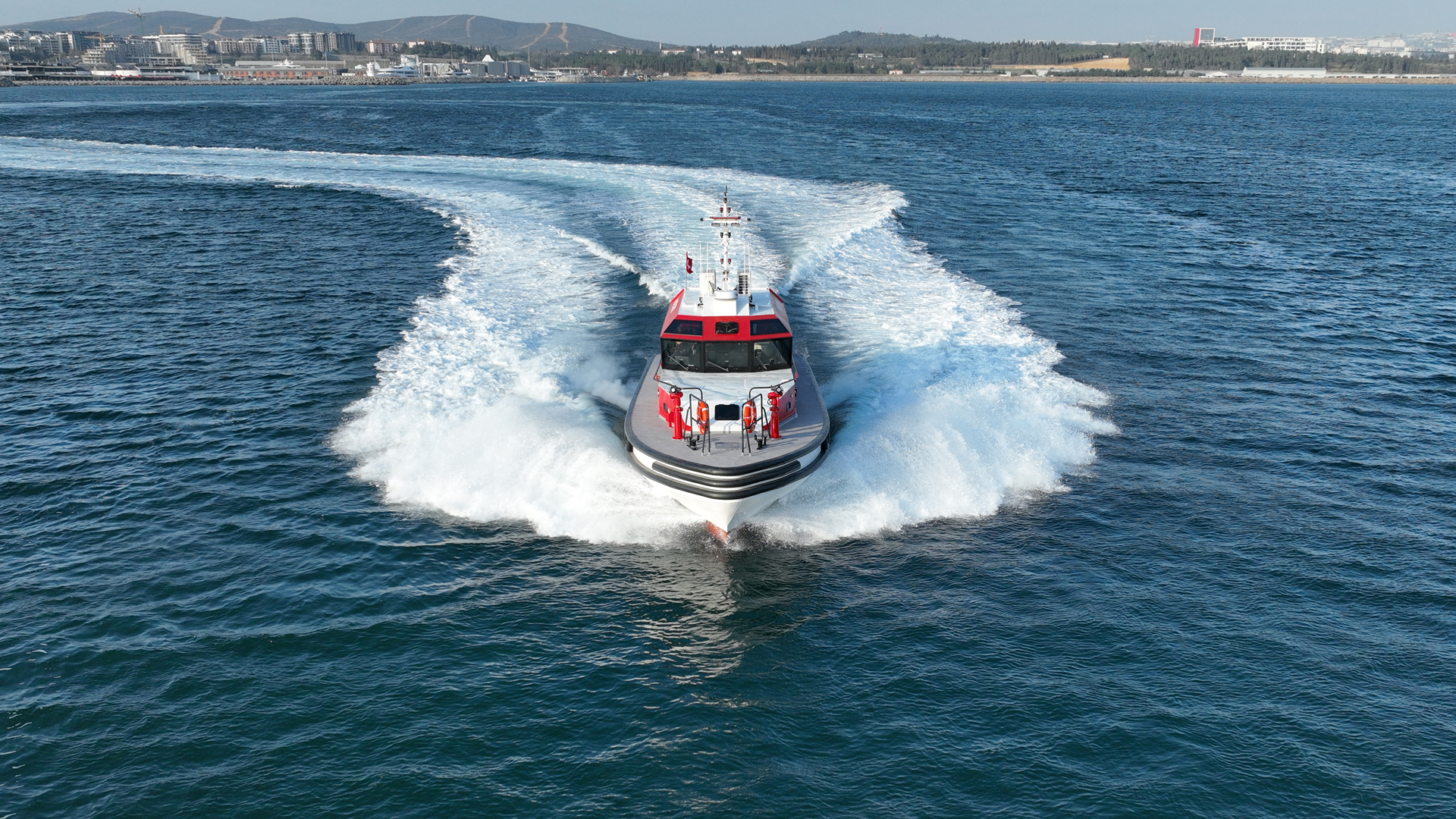 Designed and delivered by LOYD Shipyard for a UK-based operator, this 17-metre aluminum fire-fighting vessel represents the latest in purpose-built port and harbour emergency response. The deep-V planing hull combines a lightweight 5083-series aluminum structure with a wheelhouse engineered to withstand intense operational conditions, delivering top speeds of up to 30 knots with a cruising range of 300 nautical miles. Twin CAT C18 main engines, each generating 873 hp at 2,200 rpm via fixed-pitch propellers, ensure powerful and reliable propulsion across all sea states. A 600 m³/hr fire pump feeds dual manually-operated monitors and one remote-controlled monitor, providing flexible firefighting coverage from any approach angle. Fuel capacity of 2,800 litres — extendable to 3,800 litres with an external tank — combined with 900 litres of fresh water keeps the vessel self-sufficient for extended deployment. Crew accommodation is rated for 2 professional crew and up to 8 firefighters, reflecting the vessel’s role as a rapid, high-capacity emergency responder.